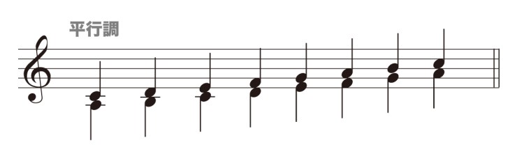 なのでこのCメジャーとAマイナーとの関係を「平行調」と呼びます。