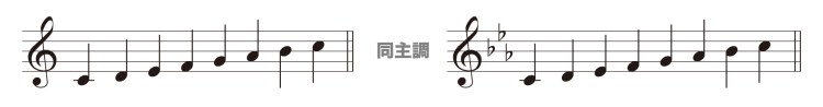 ちなみに、CメジャーとCマイナーとの関係は「同主調」と呼びます。
